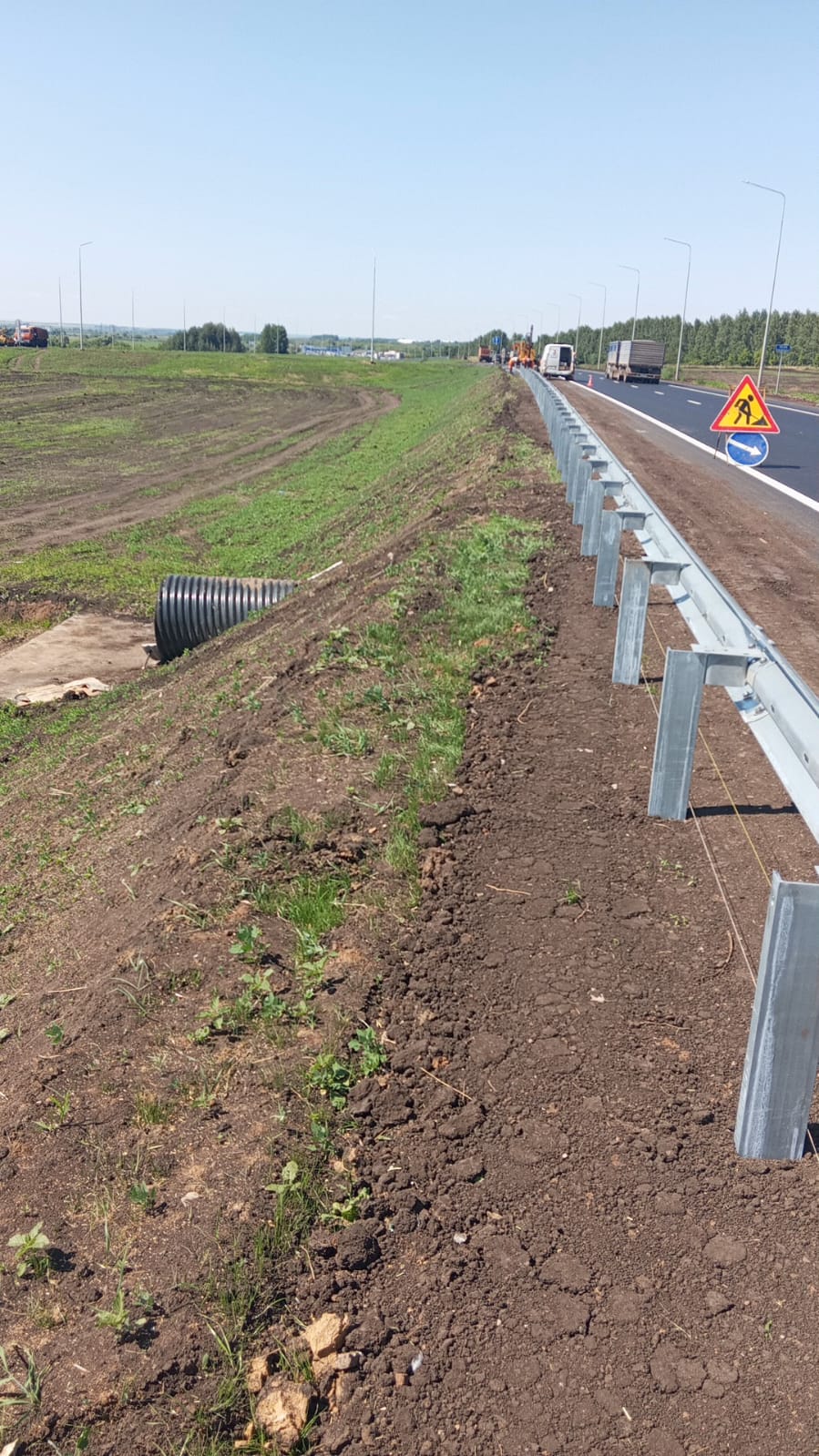 —Монтаж гофрированной трубы и барьерного ограждения участке - Дорога М-7, район Мензелинск